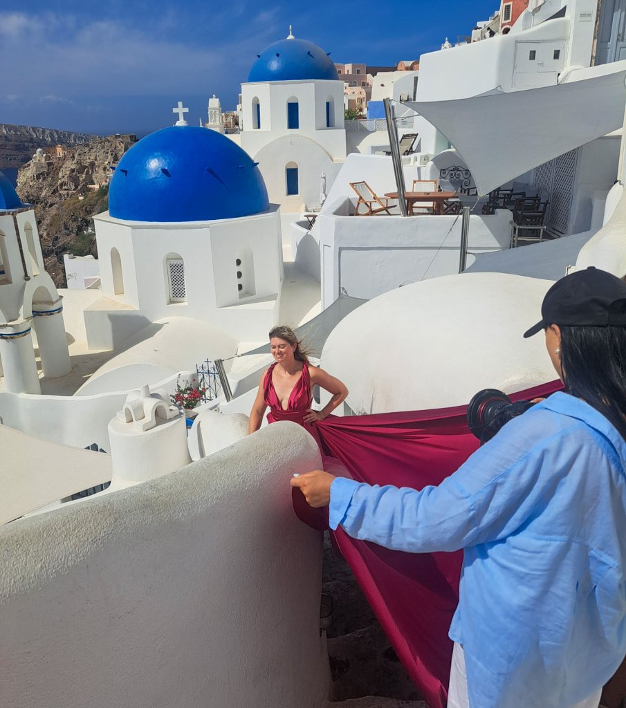 - For iconic tourist destinations, look on social media. This is where I found a photographer for my Santorini photo shoot.